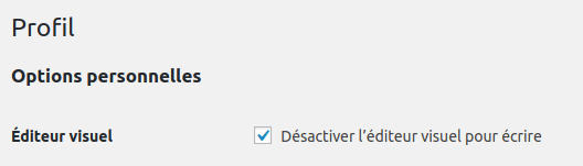 À noter que vous avez la possibilité de désactiver l’éditeur visuel dans les paramètres de votre compte :