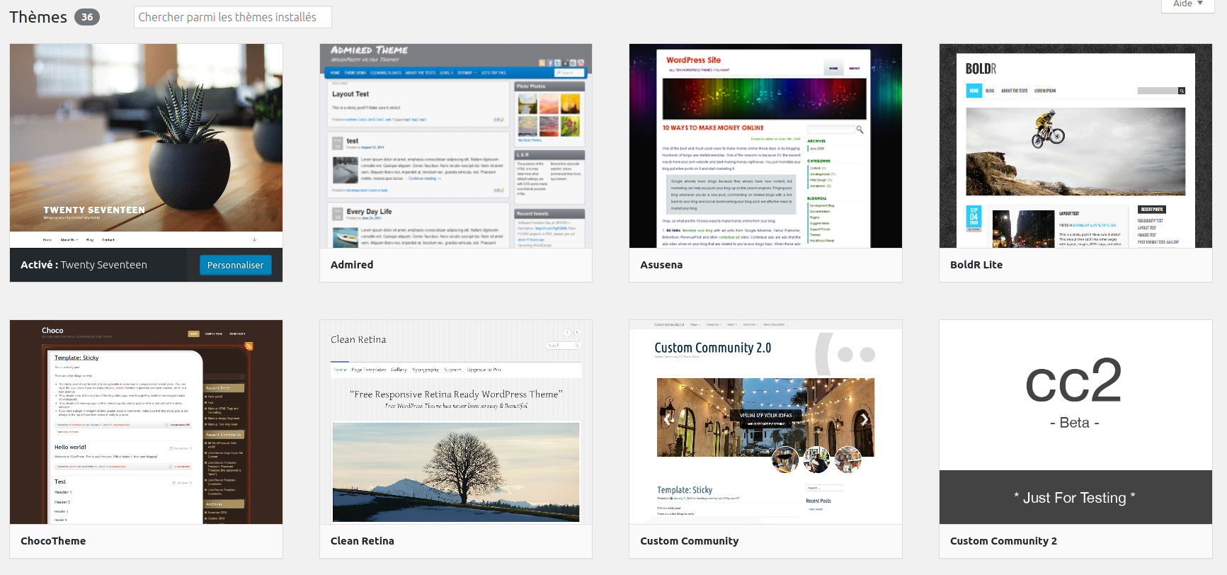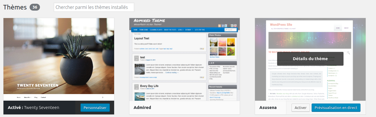 À noter qu’actuellement, nous proposons 34 thèmes, mais il est possible d’en ajouter d’autres sur demande. Le site WordPress recense les thèmes disponibles.