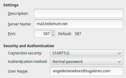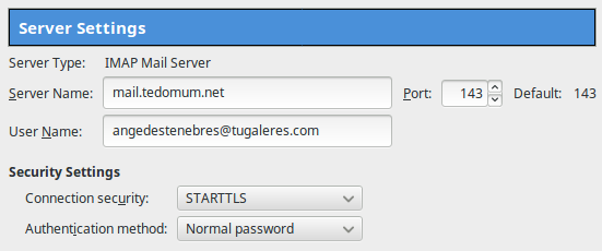 Il est également possible d’utiliser les adresses email hébergées chez TeDomum par le biais d’un client (Thunderbird, Outlook, Evolution, etc.).
