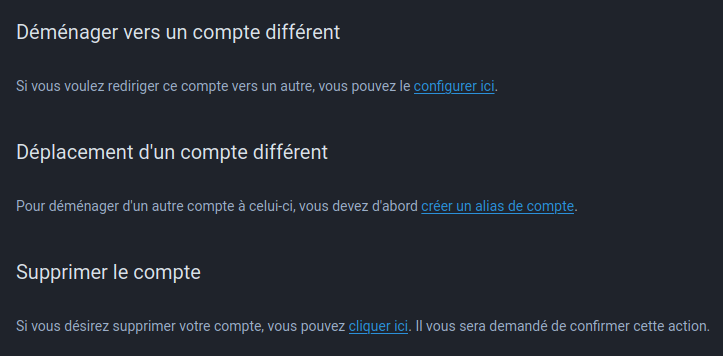 Déménagement vers une autre instance ou suppression de compte