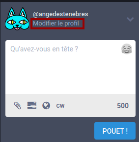 Il est bien de pouvoir envoyer des messages, mais personnaliser son profil est aussi une chose importante. Pour cela, il suffit de cliquer sur le lien Modifier le profil se trouvant sur la gauche au-dessus de la zone dédiée pour écrire un message (pouet) :