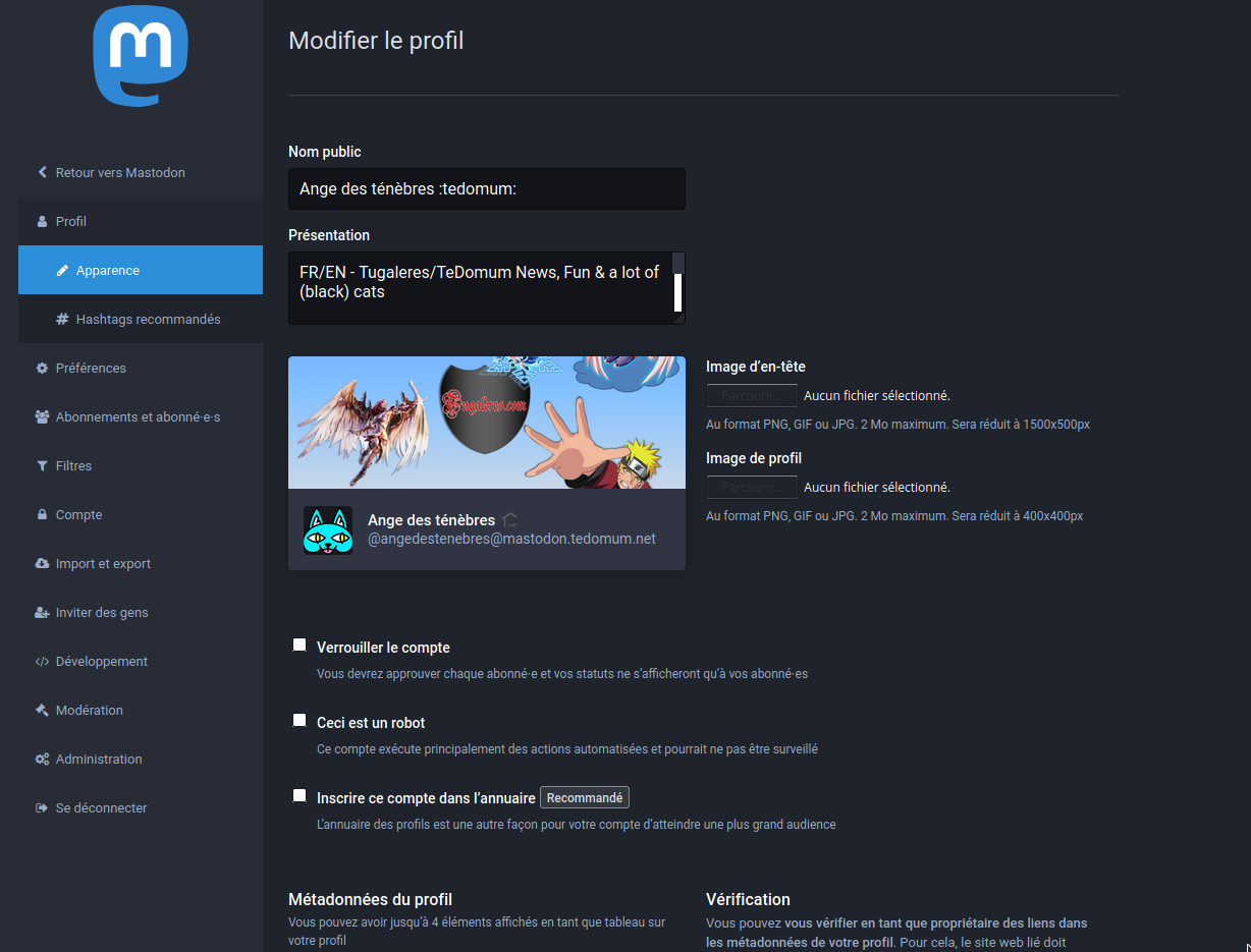 À partir de là, vous pouvez modifier le pseudo affiché, votre image de profil, la bannière de votre profil, votre présentation et bien d’autres éléments !
