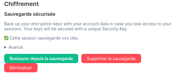 Pour savoir si tout est bien paramétré sur Element, il suffit d’aller dans les paramètres de Sécurité & Vie privée sur chacun des clients des appareils utilisés et de vérifier :