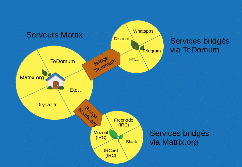 L’autre intérêt, c’est les implantations possibles que l’on appelle Bridge. Cela peut concerner des serveurs IRC, Telegram et bien d’autres services.