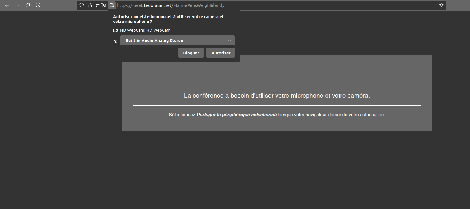 À noter que lors du lancement, un accès à votre webcam et micro sera demandé :