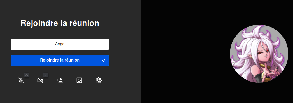 Une fois la conférence lancée, vous aurez une page qui vous permettra de choisir quelques options de base, comme votre nom ou pseudo, activer ou non le micro ou la caméra :