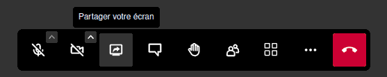 Le troisième bouton représentant un écran avec une flèche permet alors de partager la fenêtre d’une application ouverte sur votre ordinateur ou votre écran.