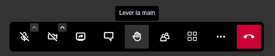 Le cinquième bouton (ressemblant à une main) permet d’indiquer aux participants que l’on souhaite prendre la parole.