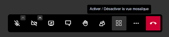 Le septième bouton (vue en mosaïque) permet de voir l’ensemble des partages (webcam ou écran) ou de choisir un seul affichage :