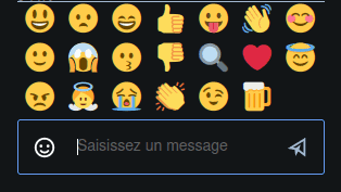 À noter que vous pouvez ajouter des émojis à vos messages. Pour cela, il suffit de cliquer sur le petit smiley se trouvant à côté de l’emplacement où vous tapez vos messages :