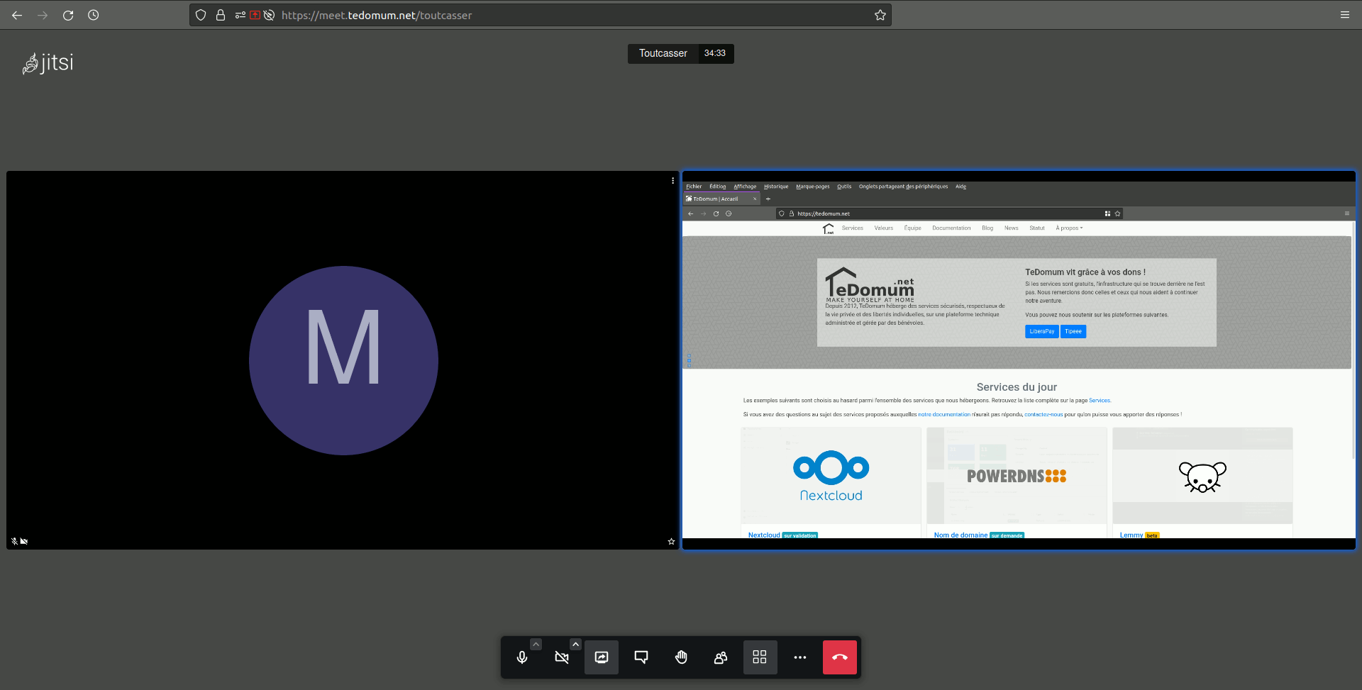 Le flux vidéo transmis sera celui de l’écran ou de la fenêtre, avec une incrustation en coin bas-droite de votre webcam, si elle est allumée. Exemple ci-dessous avec le partage du site TeDomum :