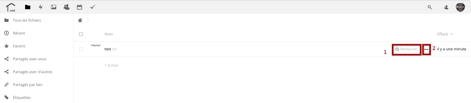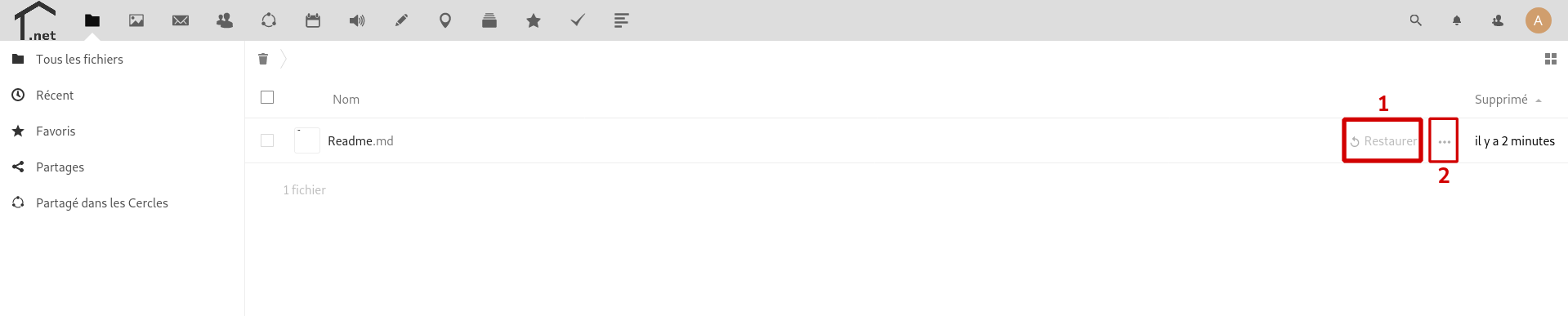 4. Si vous avez supprimé un fichier par erreur, vous pourrez le récupérer dans le dossier contenant les fichiers supprimés :