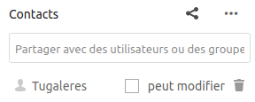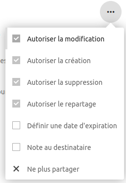 Si le fichier ou document est partagé avec un utilisateur, un cercle ou un groupe, les personnes auront par défaut tous les droits sur les documents partagés. Vous pouvez cependant affiner les droits en cliquant sur les ... s’affichant après leur nom :