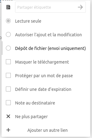 Seules les personnes ayant un compte sur Nextcloud pourront bénéficier d’un partage avec droit de modification.