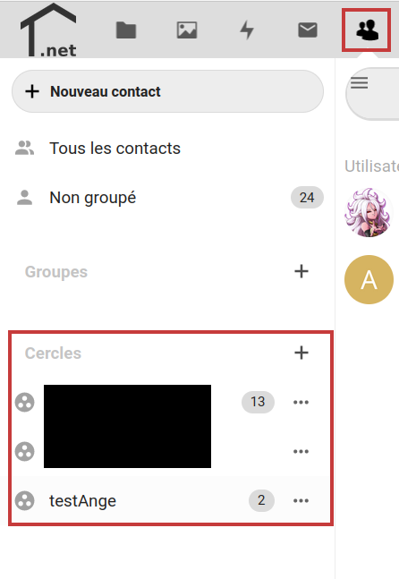 Pour cela, il suffit d’aller dans la partie Contacts dans la barre d’outils en haut de l’écran puis d’aller dans la partie Cercles :