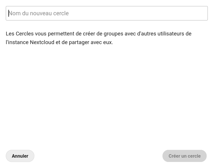 Pour créer un nouveau cercle, il suffit simplement de cliquer sur le bouton en forme de + et de choisir le nom voulu :