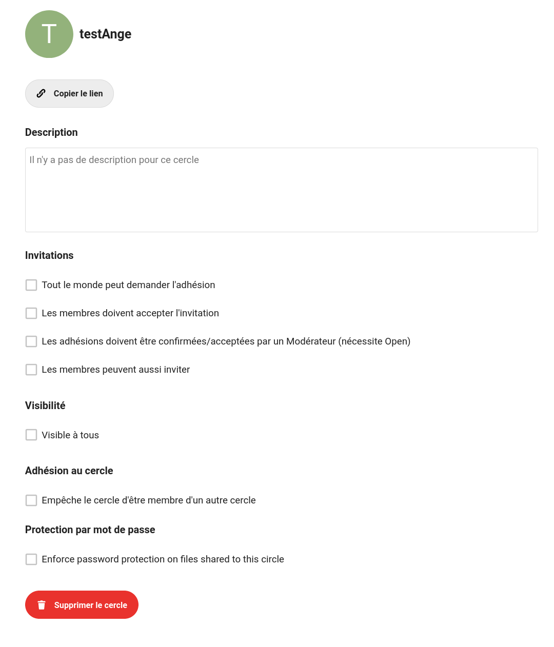 Ci-dessous les options que seul le propriétaire du cercle peut modifier :
