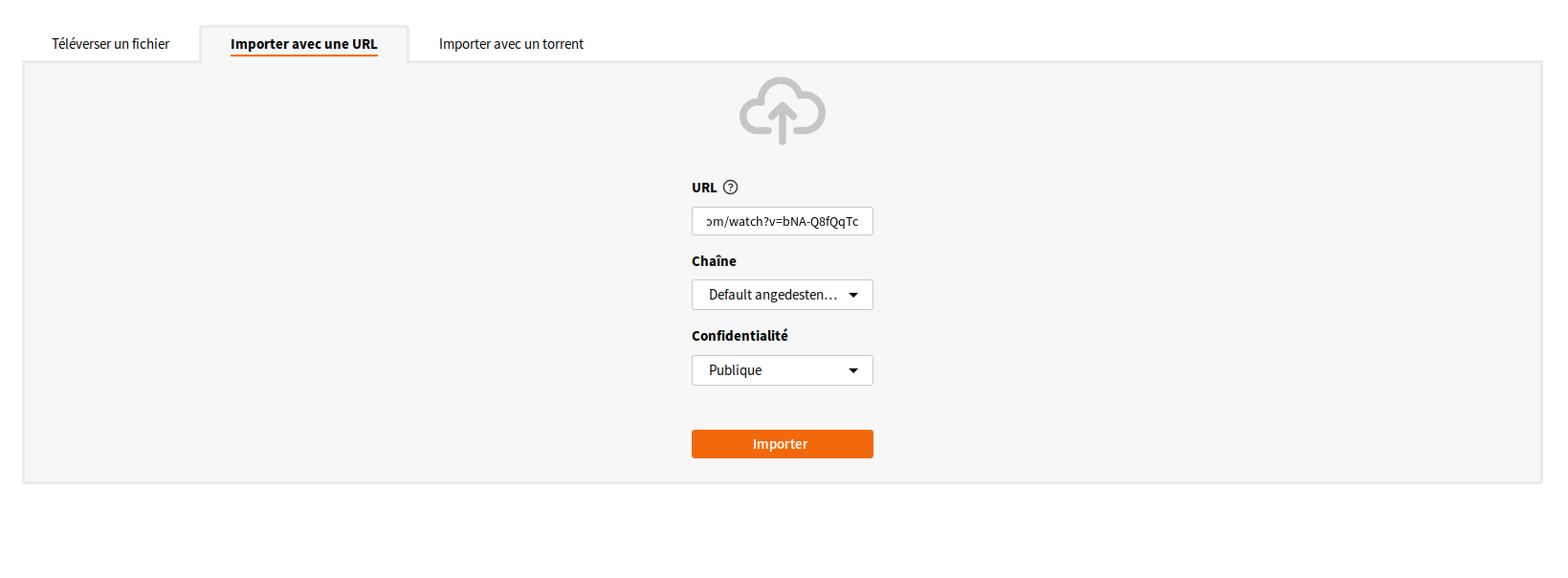 Sélectionnez l’onglet Importer avec une URL puis remplissez le formulaire comme ci-dessous :