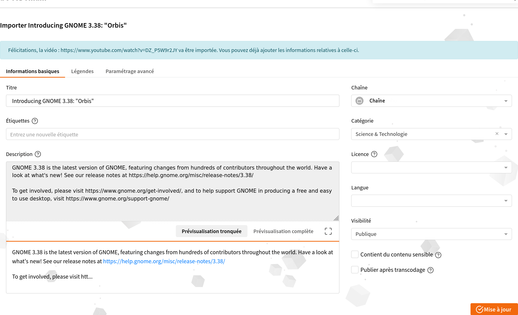En cliquant sur importer, vous aurez alors une page similaire à celle ci-dessous qui apparaîtra préremplie avec toutes les informations récupérées depuis sa source :