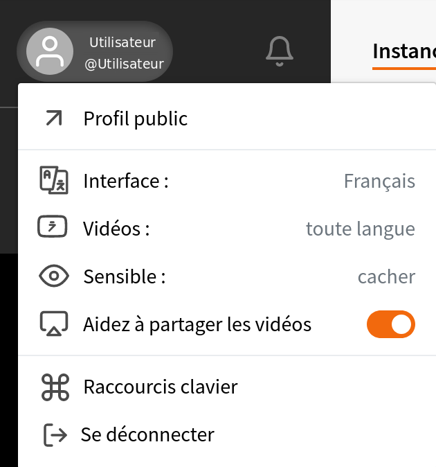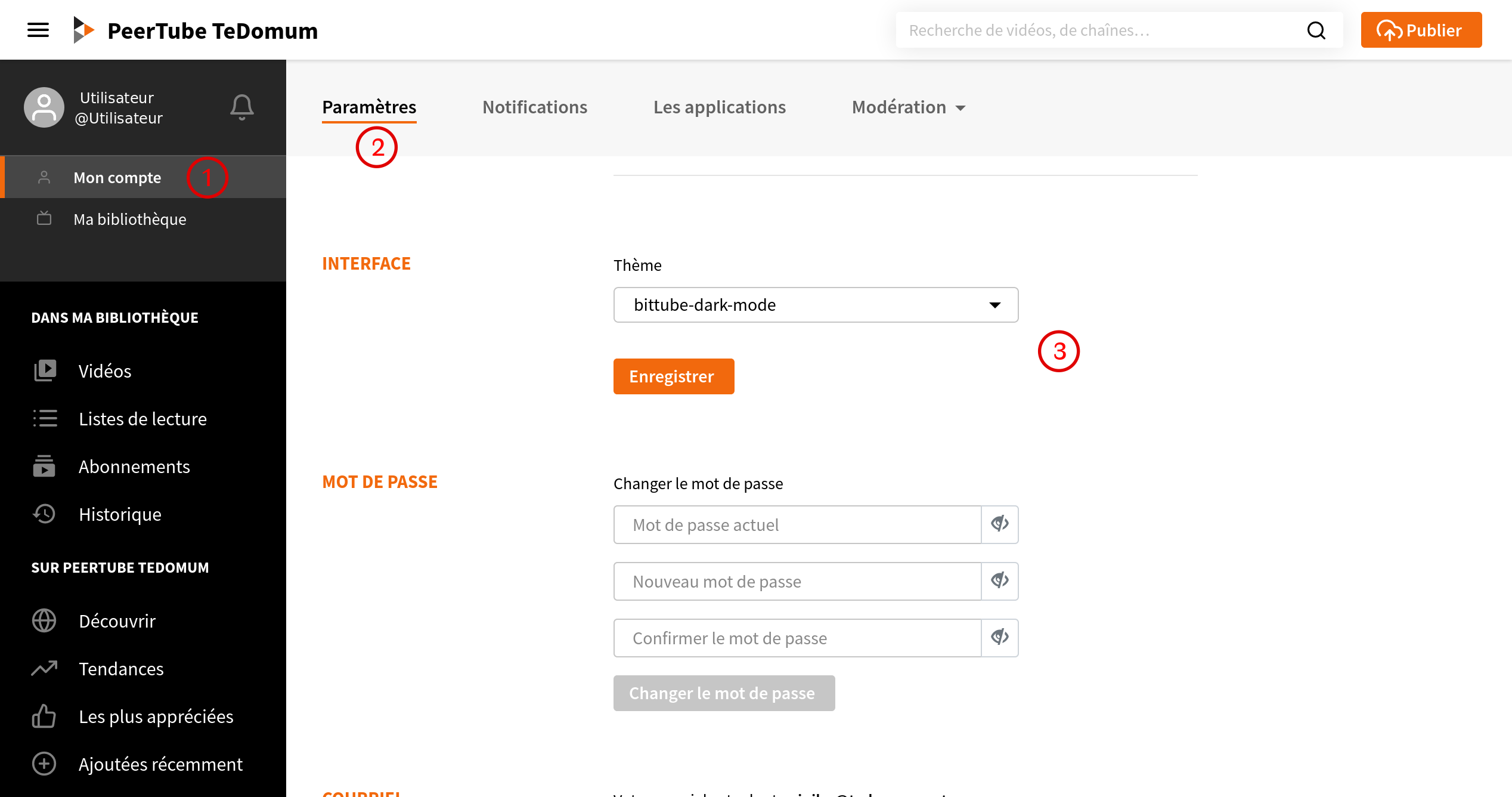 Permet de passer au thème sombre (dark) de PeerTube :