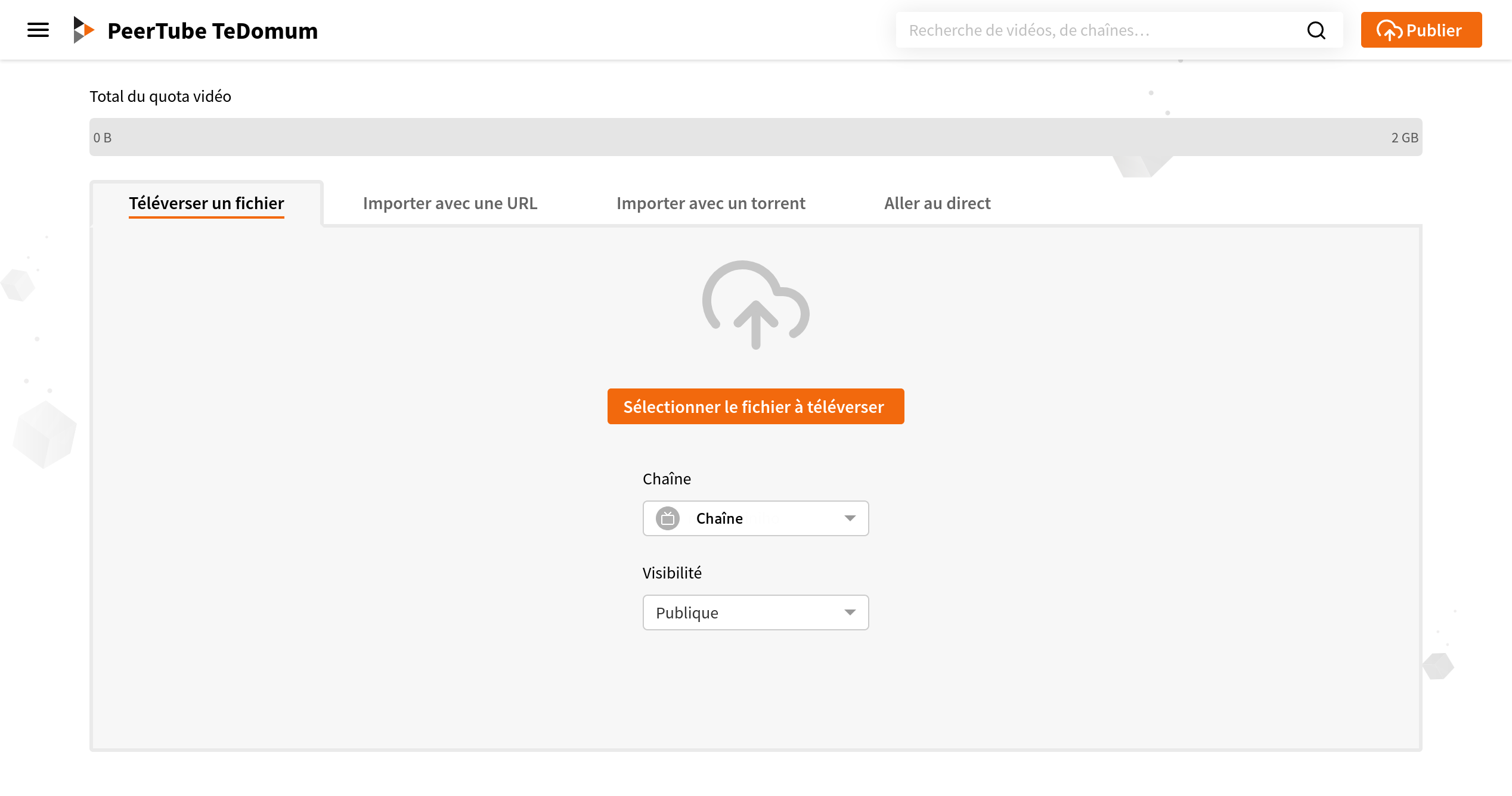Depuis la version 3 de Peertube, il est possible de publier en direct à l’aide de Aller au direct. Pour savoir comment procéder, vous pouvez vous référer à la documentation suivante.